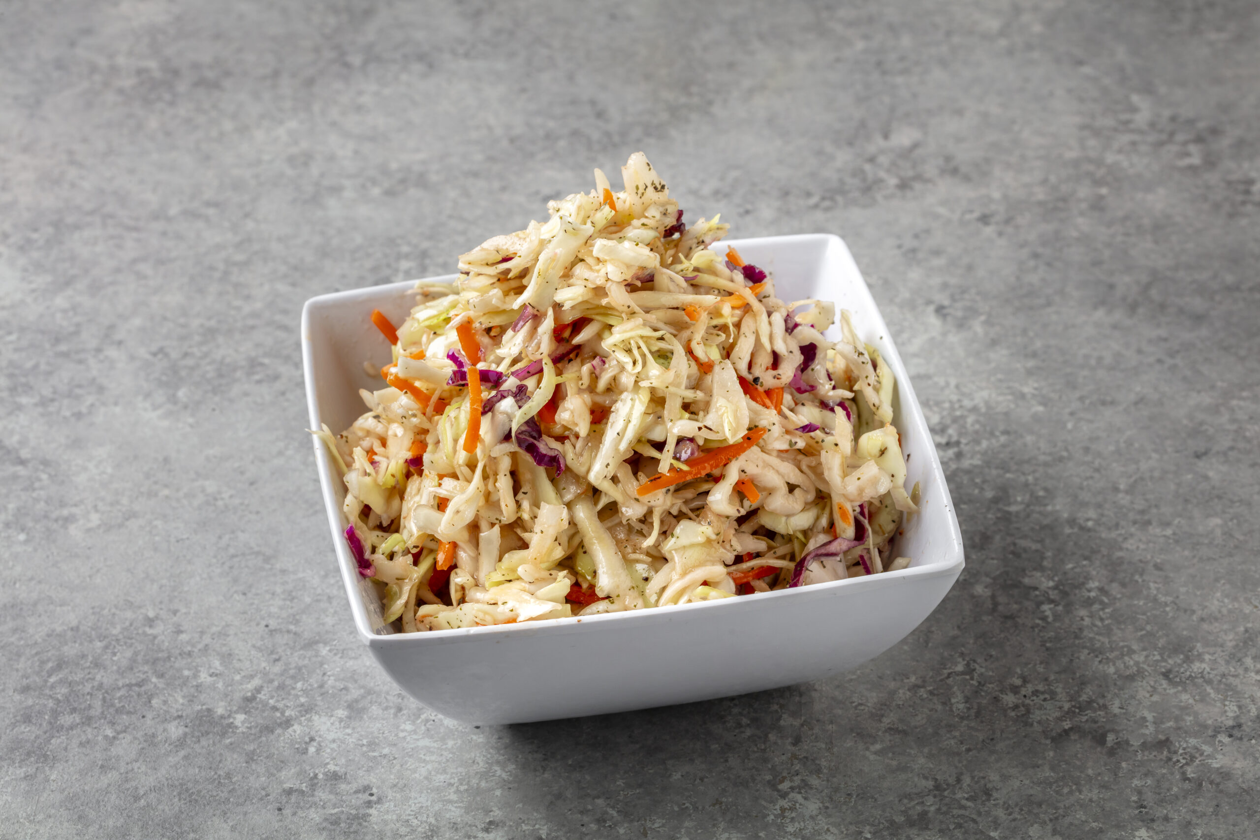 Salmon, baby kale, cucumbers, tomatoes, shredded cabbage, tossed in lemon-Dijon dressing and a touch of garlic.