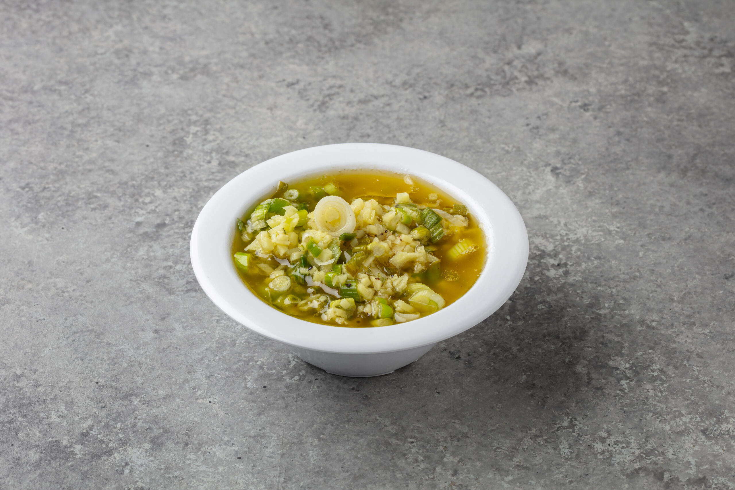 Chicken, celery, carrots, onions, diced potatoes, lemon juice, and 2 oz of rice pilaf. Made fresh daily in our kitchens.