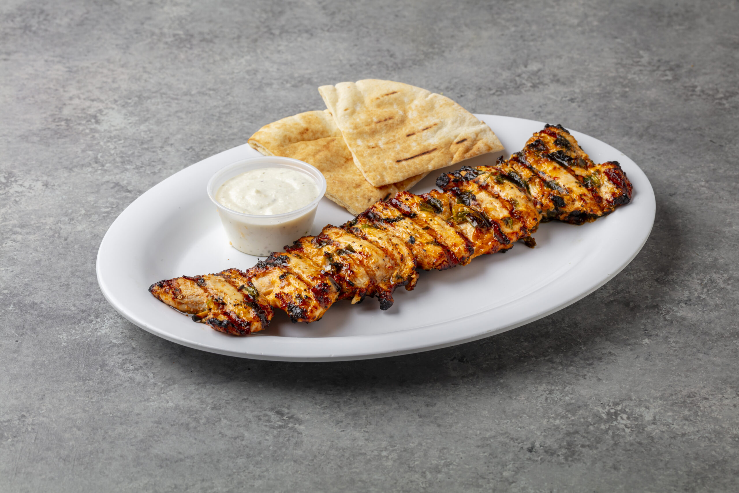 Choice of six kabobs: chicken, kafta, or steak. Comes with four vegetable kabobs, four large sides, pita bread, and garlic sauce. (More than three requires advanced notice.)